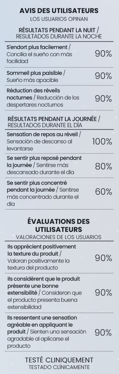 Aplicar por la noche, antes de acostarse, 4 gotas del aceite en cada muñeca y otras 4 gotas en la parte interna de cada antebrazo (zona del plexo), masajeando suavemente con movimientos circulares hasta su completa absorción. Aplicar 4 gotas bajo la nariz, presionar ligeramente y realizar un suave masaje circular, extendiéndolo hacia las comisuras laterales de la nariz, a ambos lados, mientras se respira profundamente. A continuación, aplicar 4 gotas en el centro del esternón, masajear con delicadeza y ejercer pequeñas presiones sobre este punto. Respirar profundamente y acostarse.
